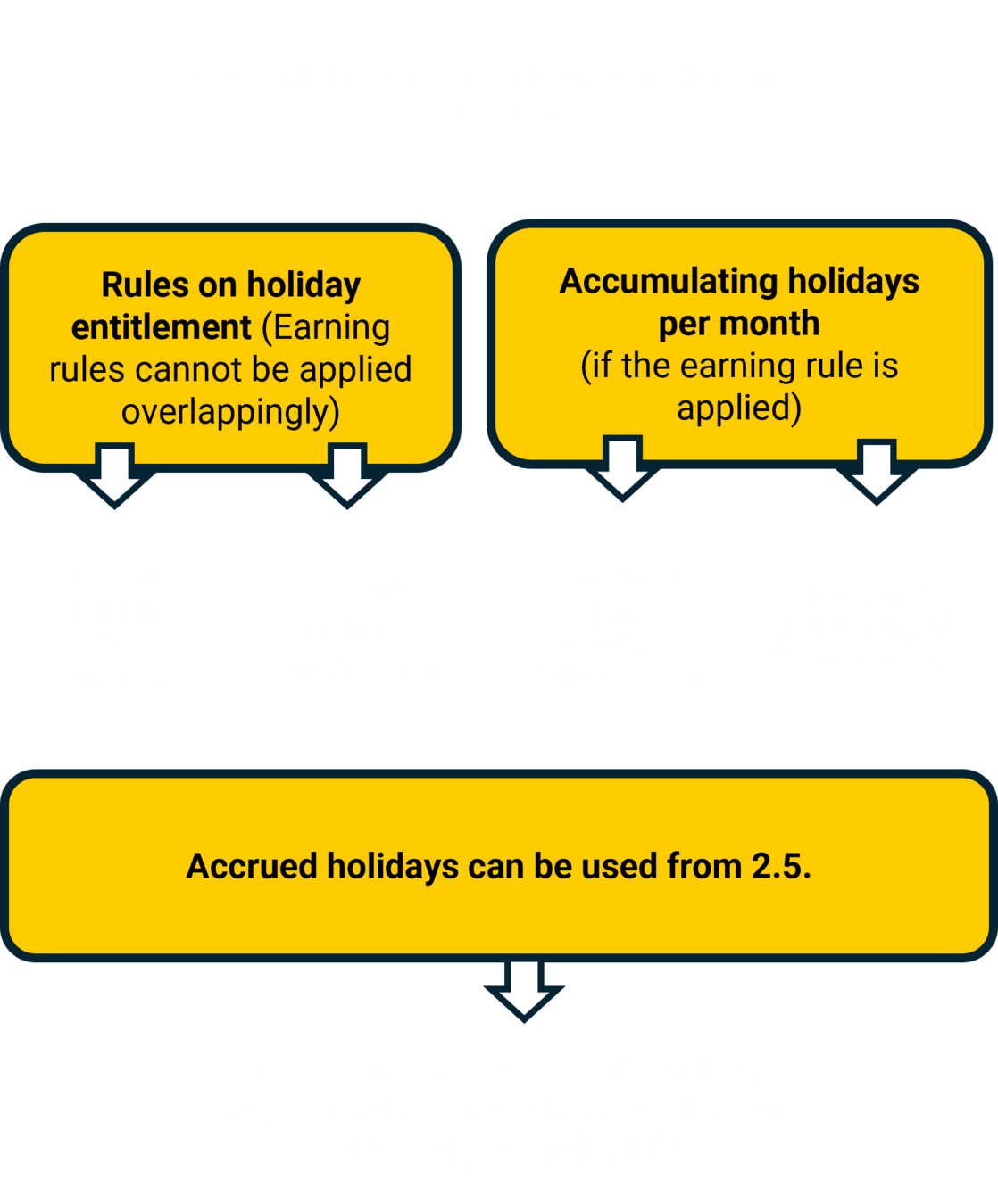 Example: Matti has started working at Bolt on 1 August 2023. He will work at least 14 days every month. Matti will have worked for 8 months by the end of the leave year on 31.3.2024. As his employment will have lasted less than a year by 31.3.2024, he will accrue 2 days of leave per month.