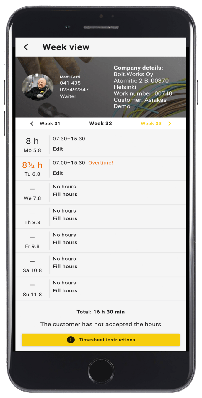 Abnormal working hours (e.g. overtime or a shorter than normal working day) must always be agreed in advance with the workplace contact and your recruiter, for example via chat in the application.