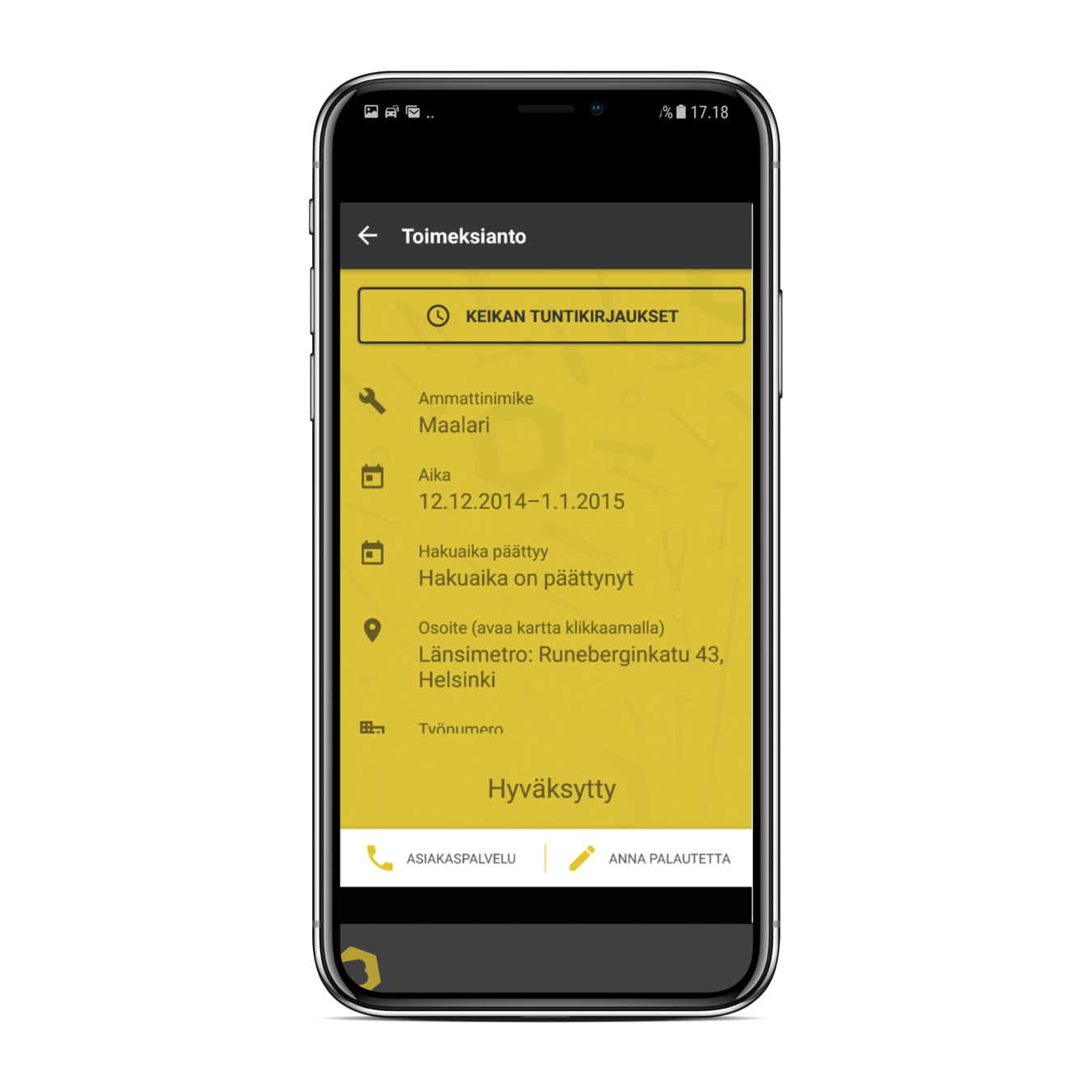 Asiakas käy hyväksymässä tunnit, jonka jälkeen ne siirtyvät palkanmaksuun. Bolt-mobiilipalvelun avulla pääset seuraamaan milloin tuntisi on hyväksytty.