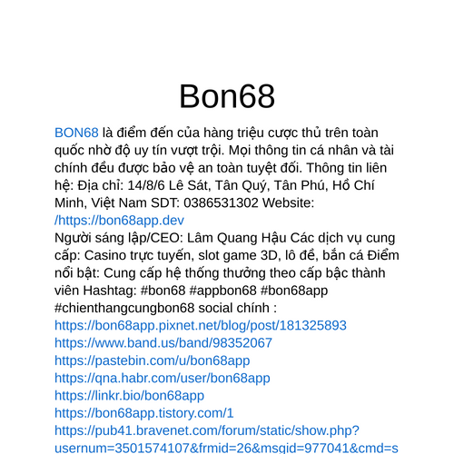 BON68 là điểm đến của hàng triệu cược thủ trên toàn quốc nhờ độ uy tín vượt trội. Website: https://bon68app.dev/