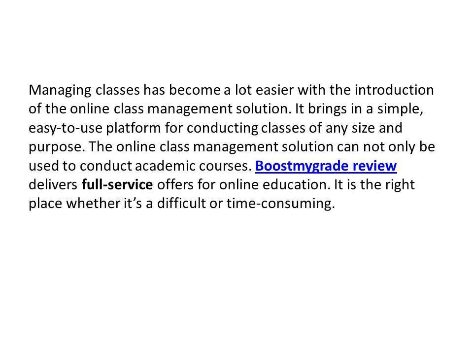 Boostmygrade review delivers full-service offers for online education. It is the right place whether it’s a difficult or time-consuming. In this presentation, You will get to know reason why to select Online Management System.