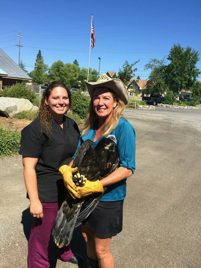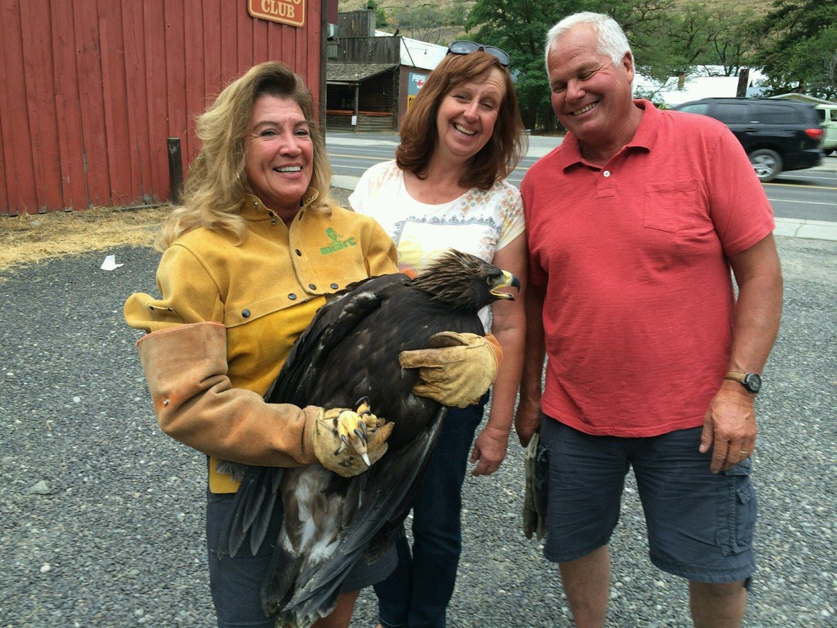 Julie and Robert Randall—here transferring a golden eagle to BoPNW