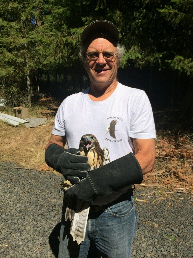 Chairman of the Board Don Veltkamp with a recovering bald eagle,
