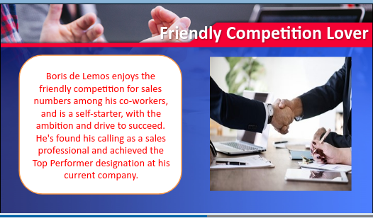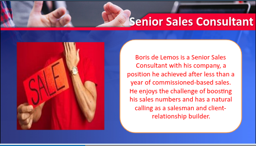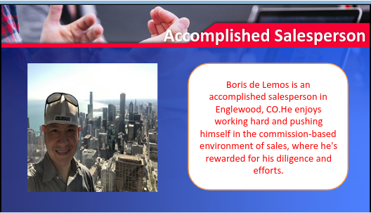Boris de Lemos has been honored with the Top Performer in the sales division of his Colordao company. He received a promotion after a year of hard work, to Senior Sales Consultant.