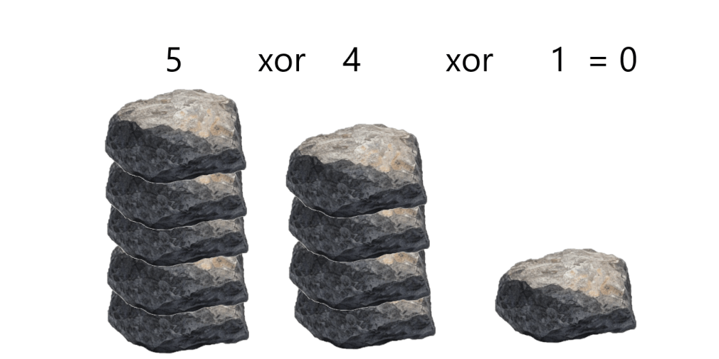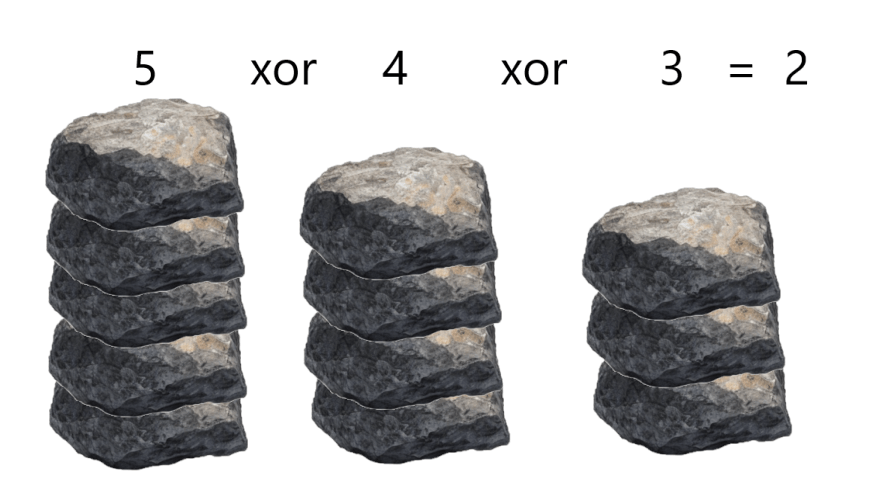 每一堆的數量做 計算,得到尼姆數,如: