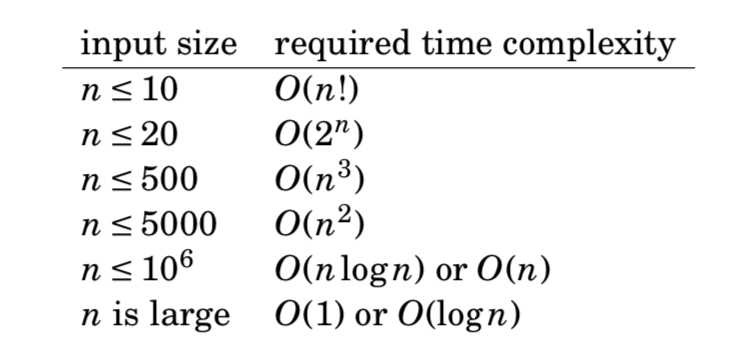對於一個競賽題目中,輸入資料量的上限,至少需要多低複雜度的程式才能在 1~3 秒內跑完