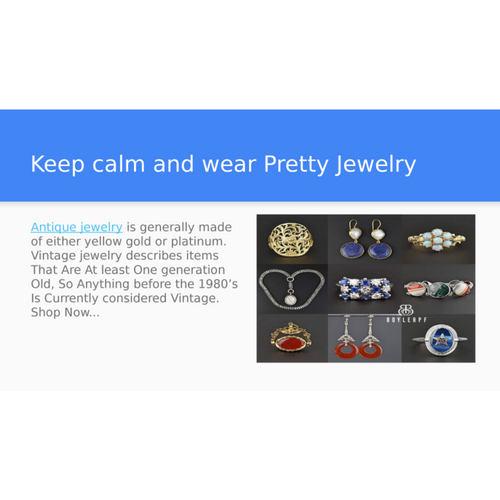 Antique jewelry is generally made of either yellow gold or platinum. Vintage jewelry describes items That Are At least One generation Old, So Anything before the 1980’s Is Currently considered Vintage. It always complements what’s already there. Get yourself an affordable set of classic antique jewelry pieces that sparkled with diamonds but cost so much less. Exquisite pieces made from gold and silver, set with the rarest and most beautiful stones. Shop Now!