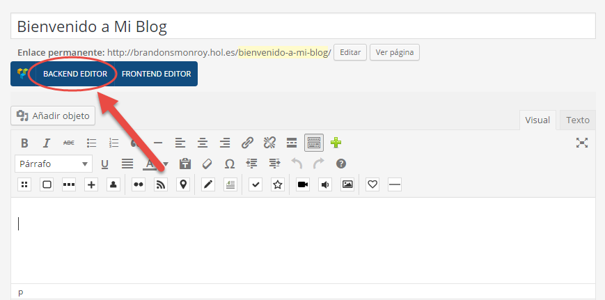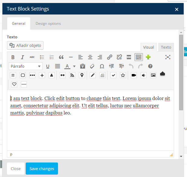Como podemos ver este editor se parece mucho al anterior las dos diferencias son que tenemos la opción de "Design Options" y abajo del editor "CSS Animation".