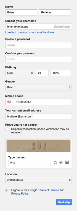 The first thing you will need to do is fill out the form on the Google Accounts registration page.