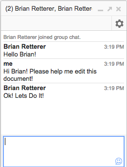 There is built in chat into documents among everyone that is editing or viewing the document at the same time.