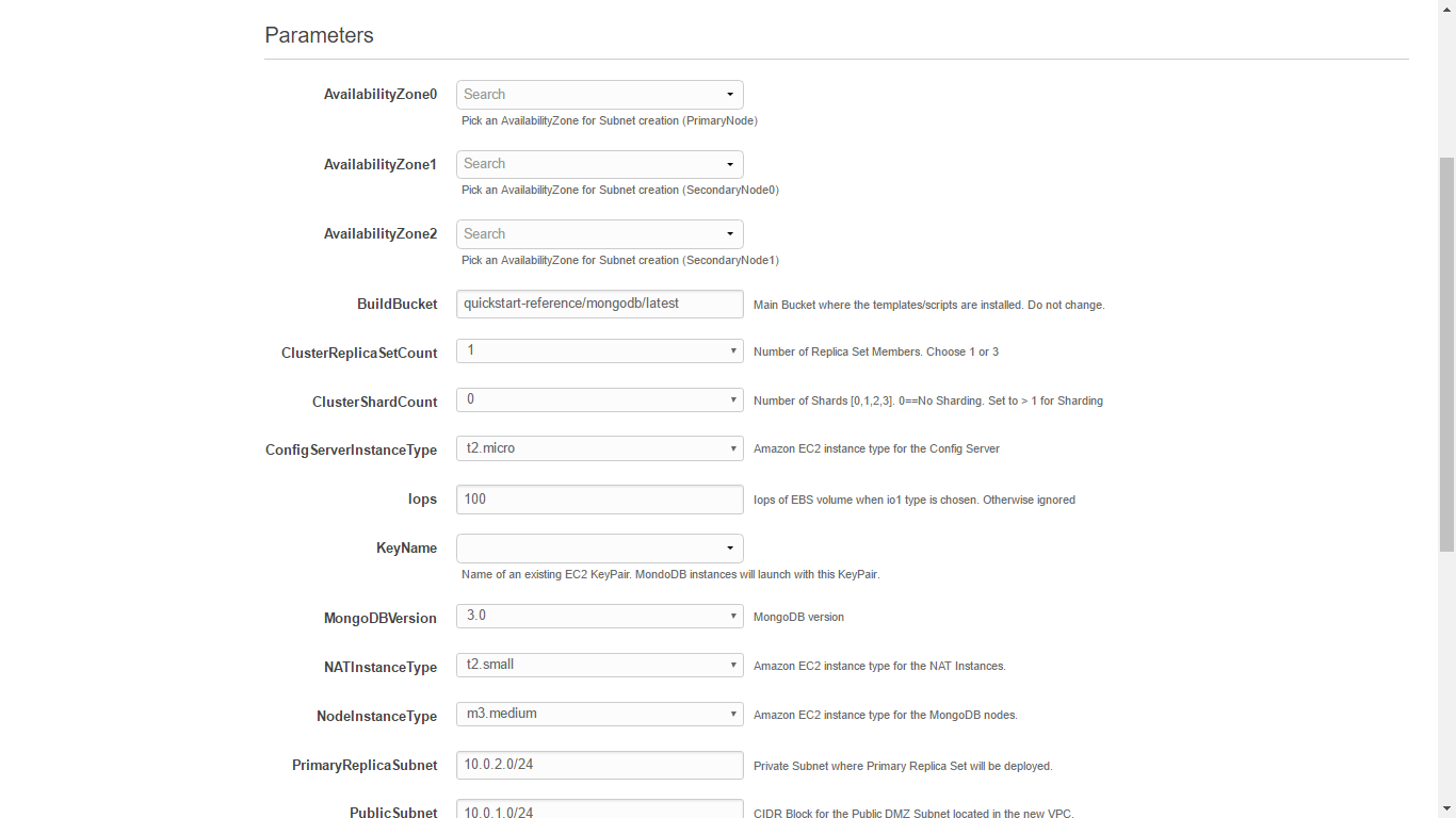 - I used the MongoDB CloudFormation template provided by Amazon (only on github, not via the CloudFormation interface).