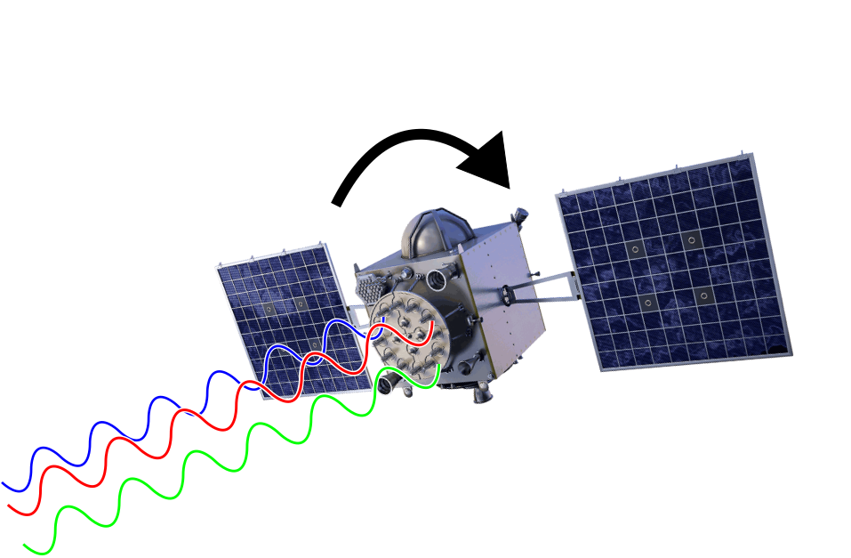 relative displacement of satellite antenna phase centers changes as satellite moves / rotates