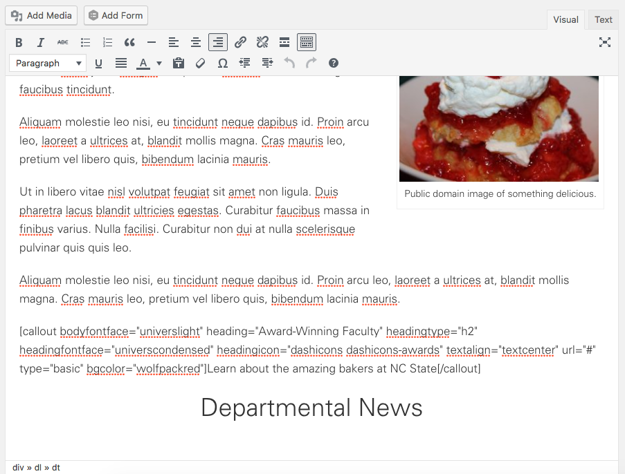 For web content creators, WordPress is easy to learn and easy to use. But when those content creators want complex layouts and custom page elements, you're left with a choice: devote developer time to building dozens of extra templates, or enable extra plugins that may do more harm than good. Shortcake, a WordPress feature-plugin under development, offers a better way forward. We'll look at how NC State is using Shortcake, and how it can empower both developers and content creators.