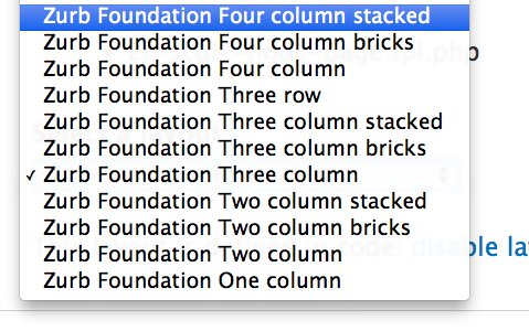 - A base theme with Zurb Foundation (don't change PHP/CSS in zurb-foundation folder)