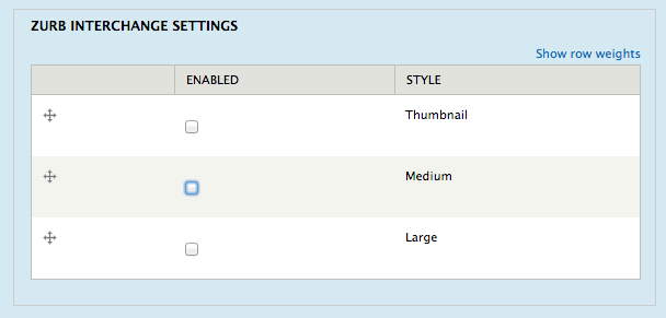<img data-interchange="[/path/to/default.jpg, (default)], [/path/to/bigger-image.jpg, (large)]">Adds settings to Image field types in the Field UI display settings under Manage Display (smallest to largest)