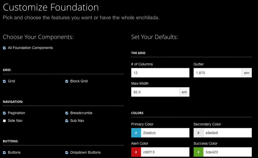 animations, alerts, buttons, columns, grid, icons, colors, form elements, heading, lists, PARAGRAPHS, tables, typography