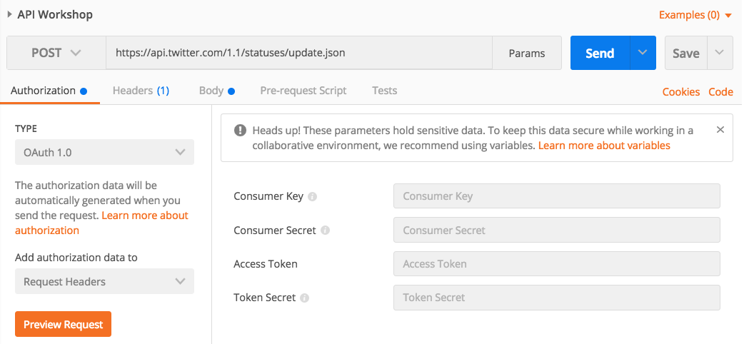 API Call to Twitter with Postman