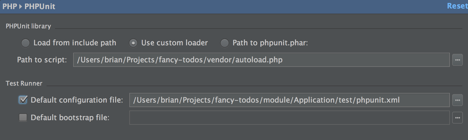 If we are going to be running tests frequently, we will need to set things up so PHPStorm knows how to run our test suite:
