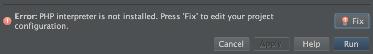 If you get this you will need to click "Fix" and point PHPStorm to your PHP install: