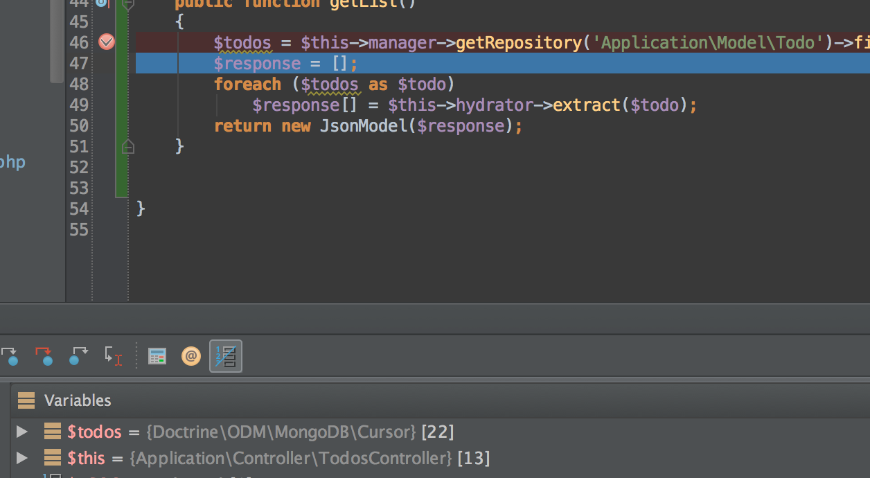 We set breakpoints to pause execution and take a peak at the current environment while an application is running: