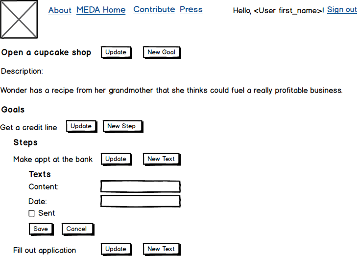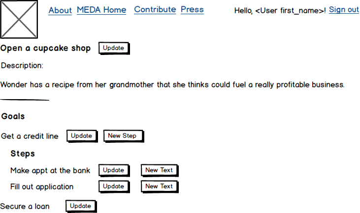 As a user (coach), I want to be given the option to update my goals or given the option to add coordinating steps.