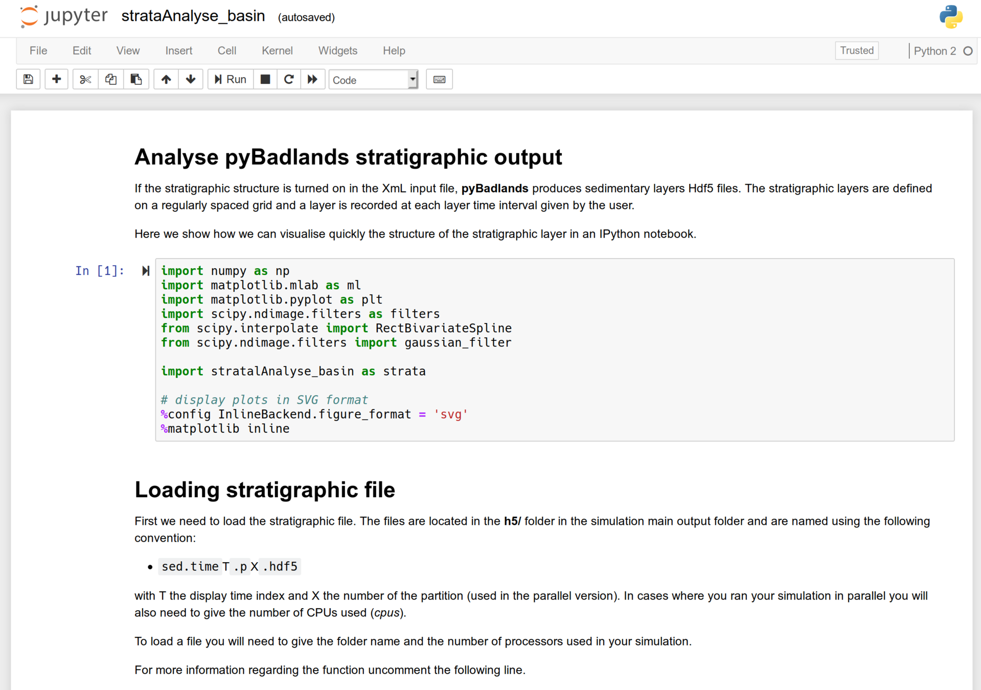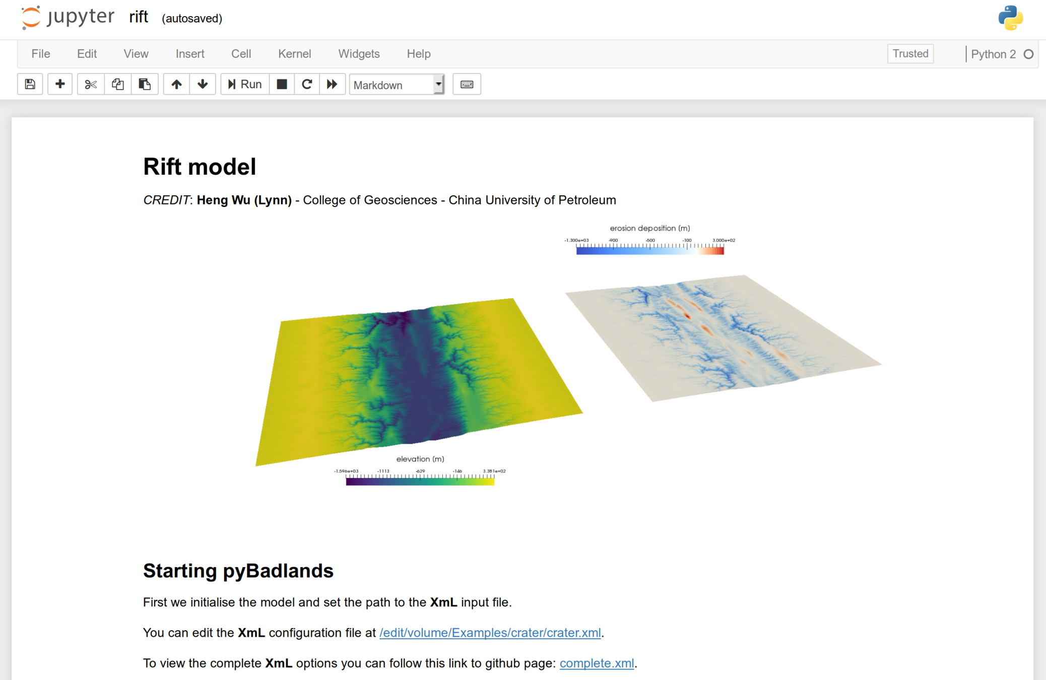 d553869450dc brmather/pybadlands-workshop:16.04-ubuntu "/usr/local/bin/tiniā¦" 5 hours ago Up 5 hours 9999/tcp, 0.0.0.0:8885->8888/tcp pybadlands-workshopPull the docker image to your computer and run it within a container