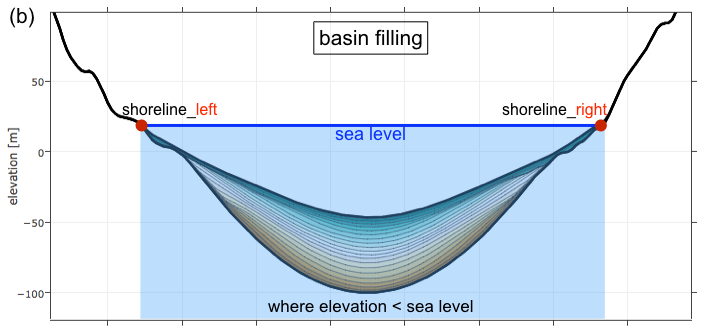 <!-- Critical slope used to force aerial deposition for alluvial plain,