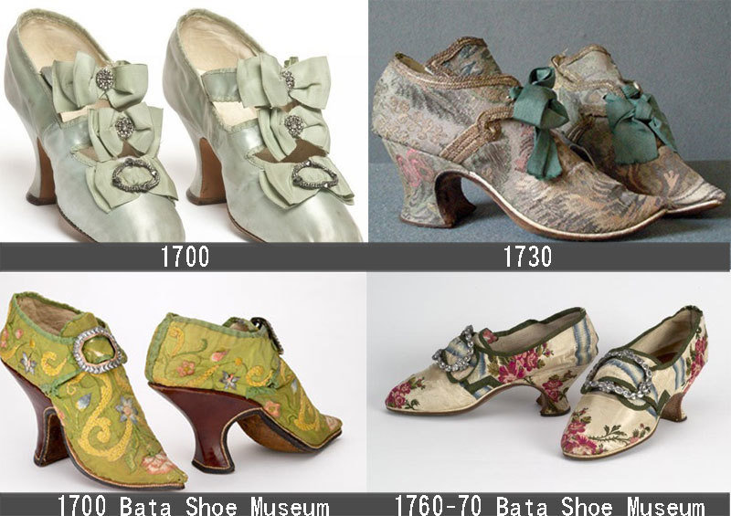 那時的鞋子大多採用優質的材料,像皮革、錦緞,配以奢侈豪華的裝飾,如絲綢帶、大扣子、刺繡、珠寶等。