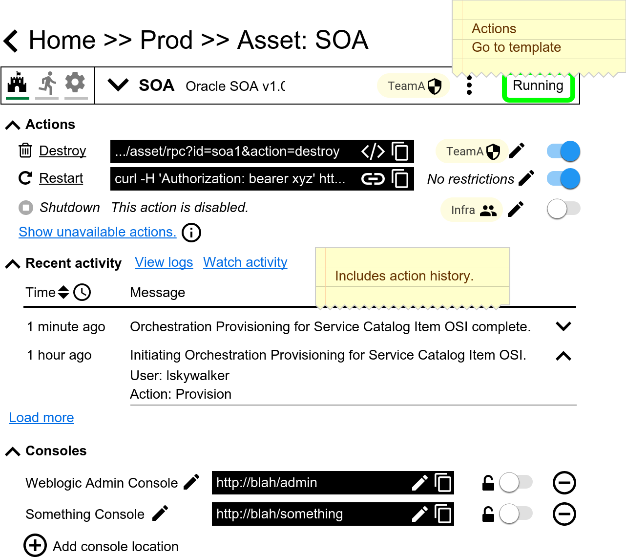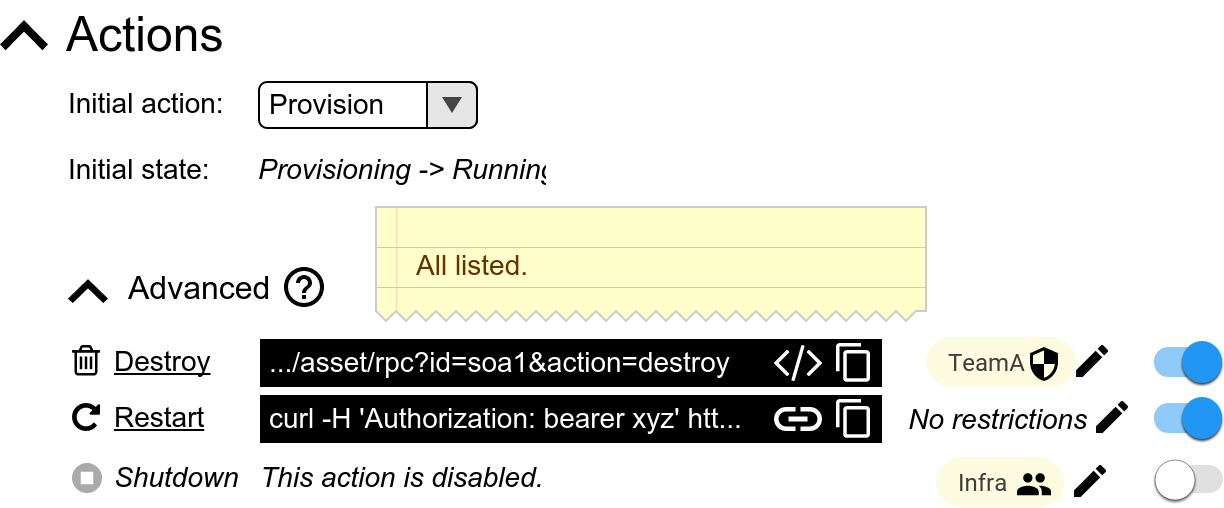 - e.g. to manage existing stuff, add a template for it which only has the custom actions you want to add