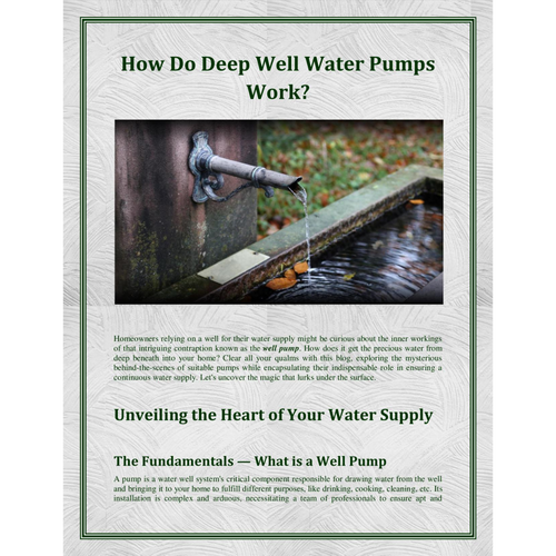 Learn everything about the interesting inner workings of submersible well pumps! Discover how these effective gadgets take water from deep beneath the earth and transport it to the surface. To learn more about pumps, visit the blog post "How does a submersible well pump work" https://brucemackay.home.blog/2023/08/09/how-does-a-submersible-well-pump-work/