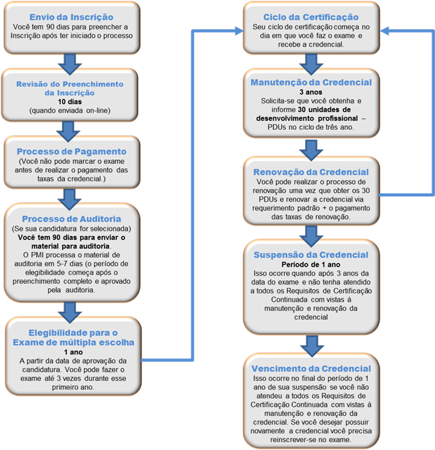 - Para manter a certificação ativa, são necessários 30 PDUs (unidade de desenvolvimento profissional) a cada ciclo de 3 anos;