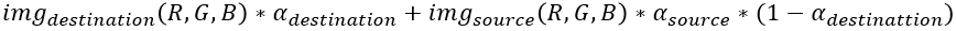 fputc((char) (mapPixelsDest[posY][posX][2] * ad + mapPixelsSour[posY][posX][2] * as * (1 - ad)), fp);