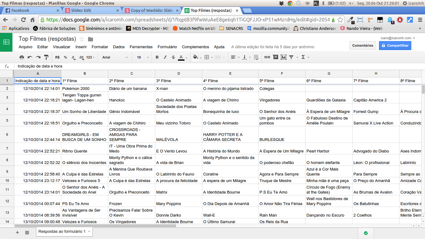 | Cassio | 0.166 |Tabela com índice de similaridade