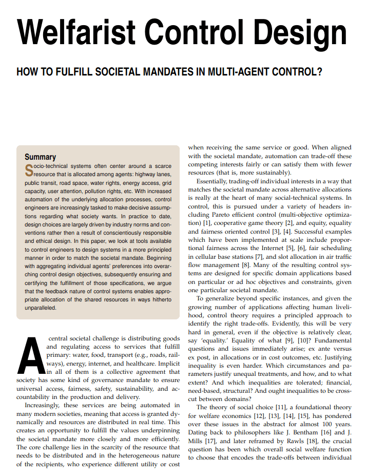 Focus on the implementation of welfarist decision rules that must function despite feedback, dynamics, and constraints.