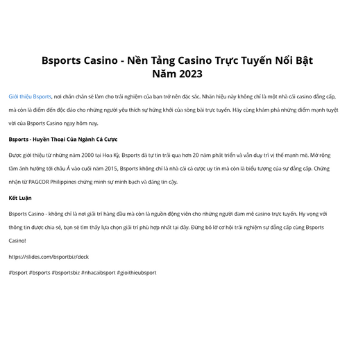 Bsports là nhà cái uy tín đang nổi trên thị trường. Với kho game cá cược đỉnh cao, chắc chắn anh em sẽ có những trải nghiệm tuyệt vời nhất tại Bsports! Website: https://bsports.biz/
