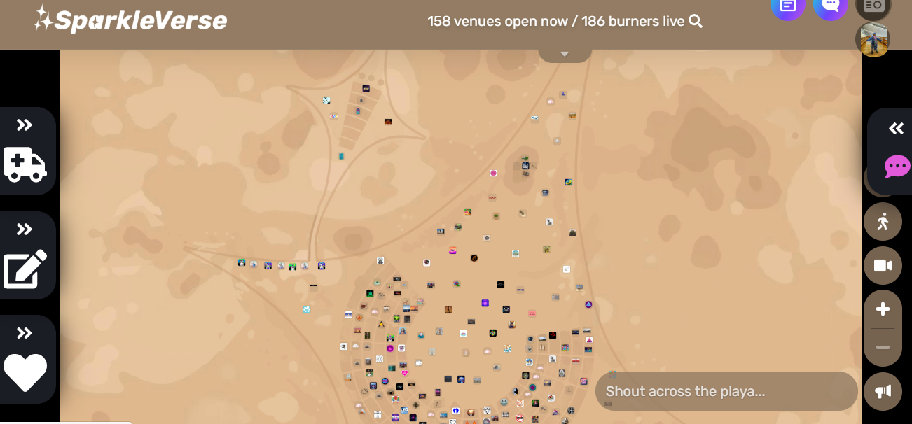 マイアミのリージョナルイベントLove Burnのメンバーが中心となって提供するウェブベース(Chrome)の仮想空間。