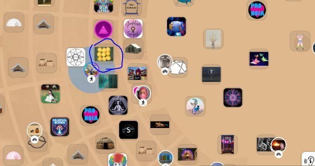 地図上のアイコン(Venue)がテーマキャンプ等パフォーマンスの会場
