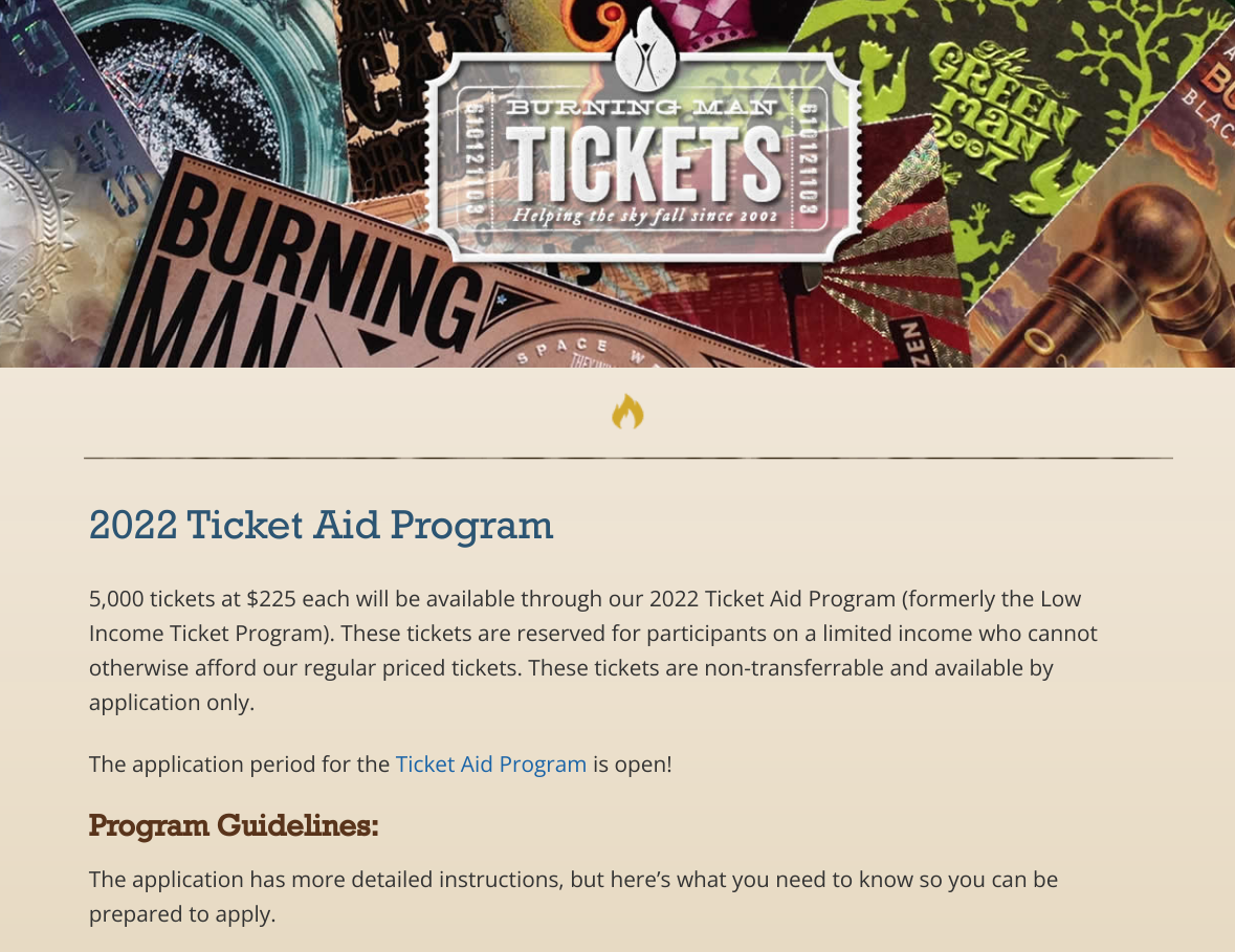 2022年のバーニングマンチケット購入方法解説スライド、3月受付開始Ticket Aid Program編。
