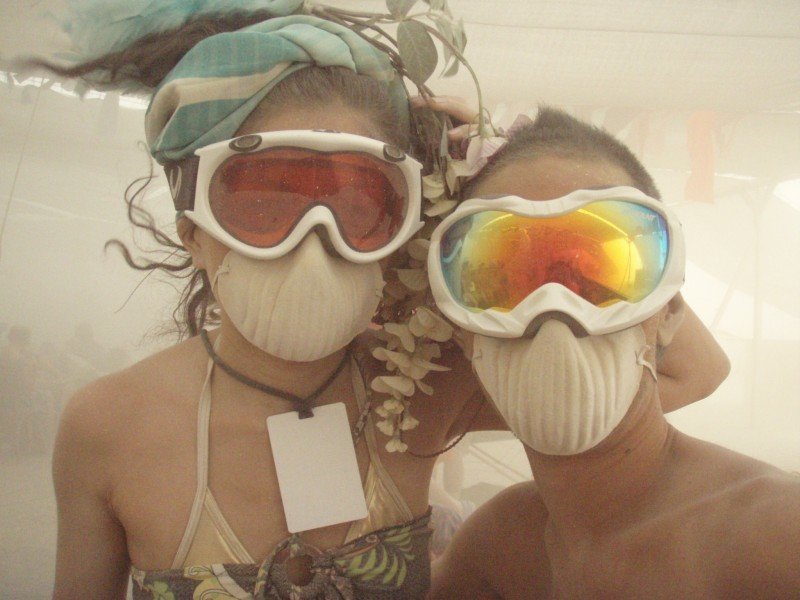 Sand stormが来た時に鼻と口を覆えるものであればバンダナでもコロナ用マスクでも。細かいダストを防いで、かつ呼吸がしやすいモノが便利です。