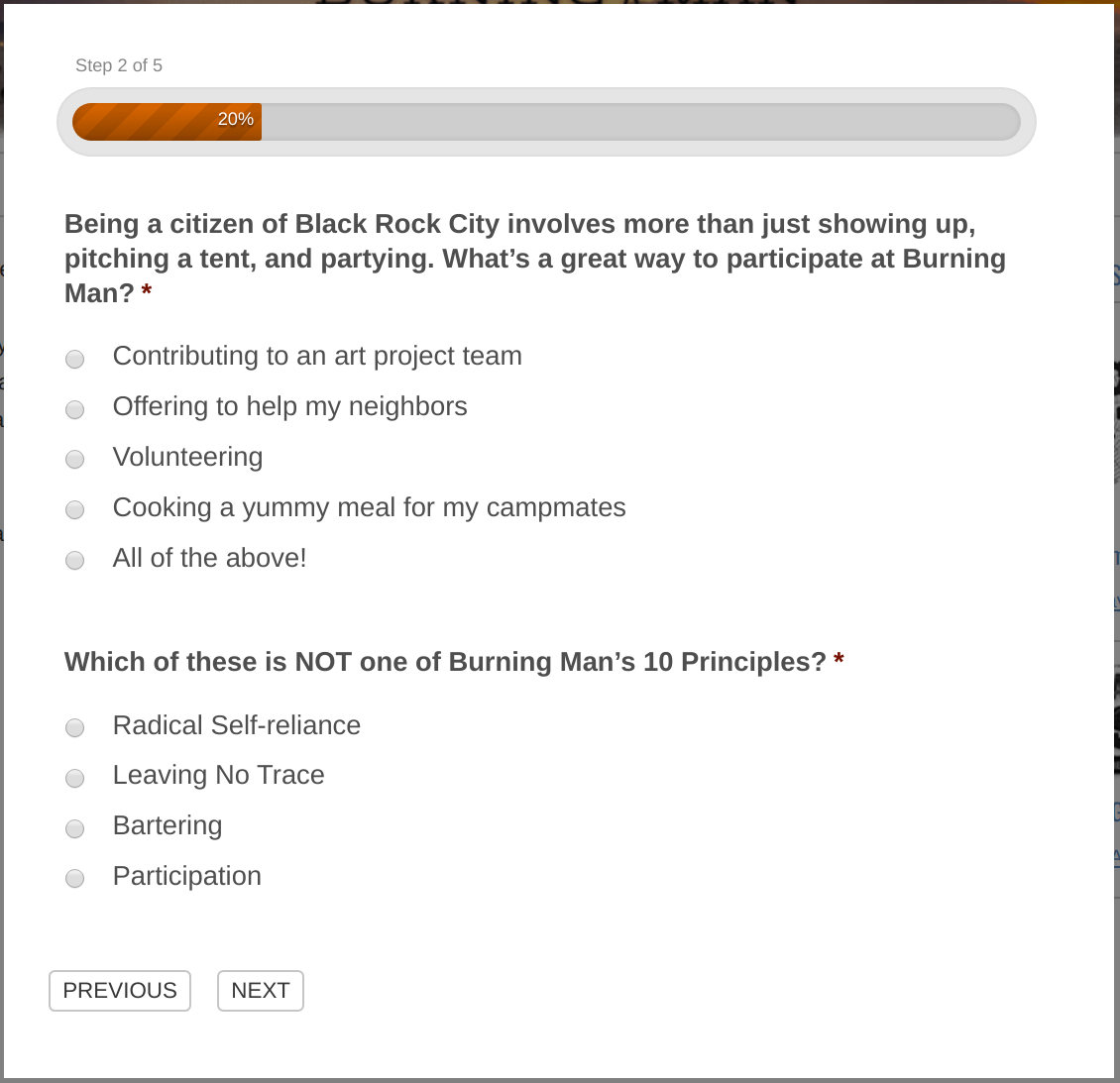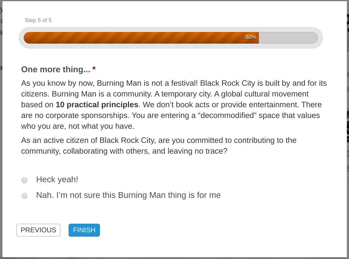 ブラックロック市民として、コミュニティに貢献し、隣人と協働し、ゴミを全て持ち帰る事を約束できますか?