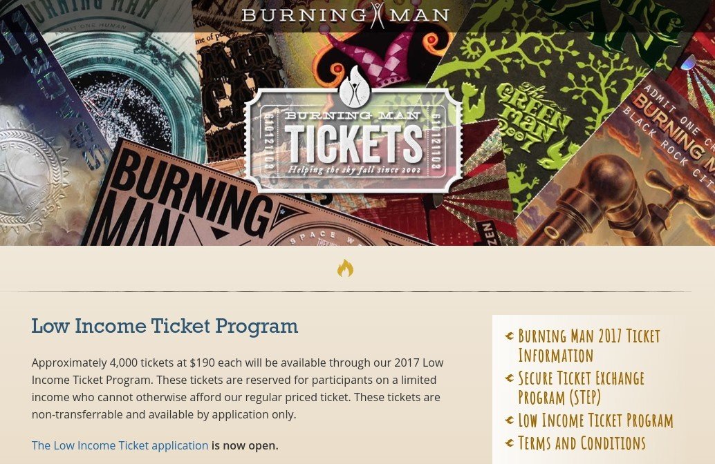 Early entrance before Sunday, August 27, 2017 is only given to those working with the infrastructure of the event, a placed art installation or a placed theme camp. Early arrival permission is not given as part of being awarded a Low Income ticket. Early Arrival permission must be obtained from the department or group with which you are working. You cannot pick your ticket up before Will Call opens, regardless of the date your department has given permission to arrive on.