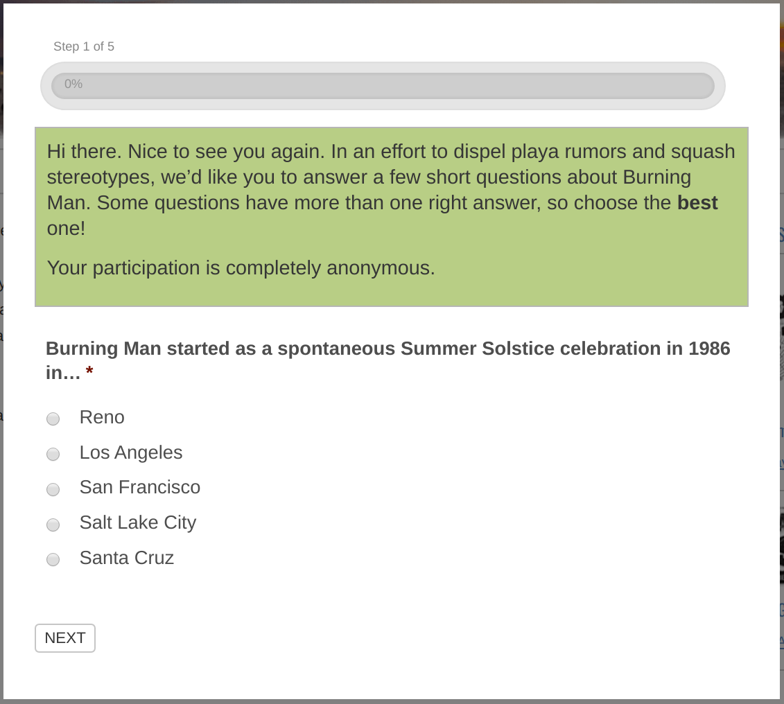今年から、バーニングマンについての簡単なクイズに回答しないとアカウント作成ができません。