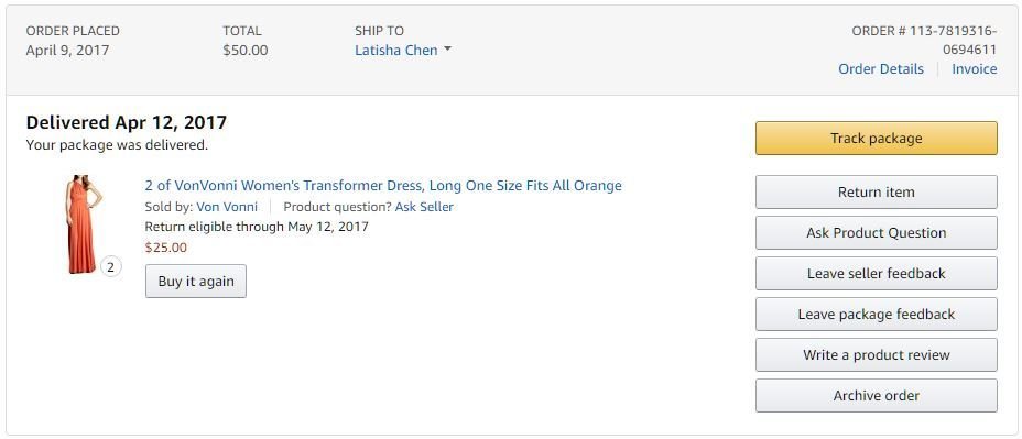 可以直接複製購買的商品名稱(如:Women's Classic Cap-Sleeve Wrap Dress)
