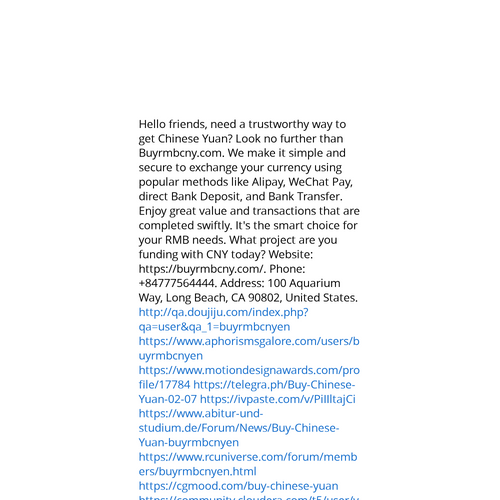 Website: https://buyrmbcny.com/. Hey there, need a reliable way to get Chinese Yuan? Look no further than Buyrmbcny.com. We make it simple and secure to exchange your currency using popular methods like Alipay, WeChat Pay, direct Bank Deposit, and Ba