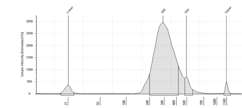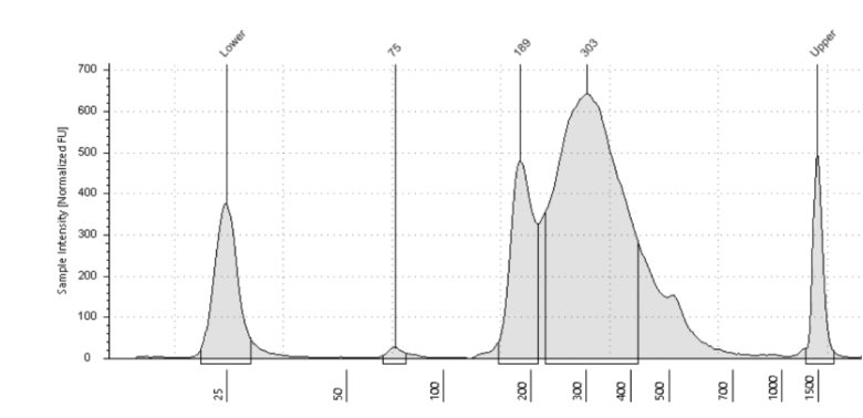 If a peak is observed at ~ 180bp, cleanup the pool with 0.7X beads