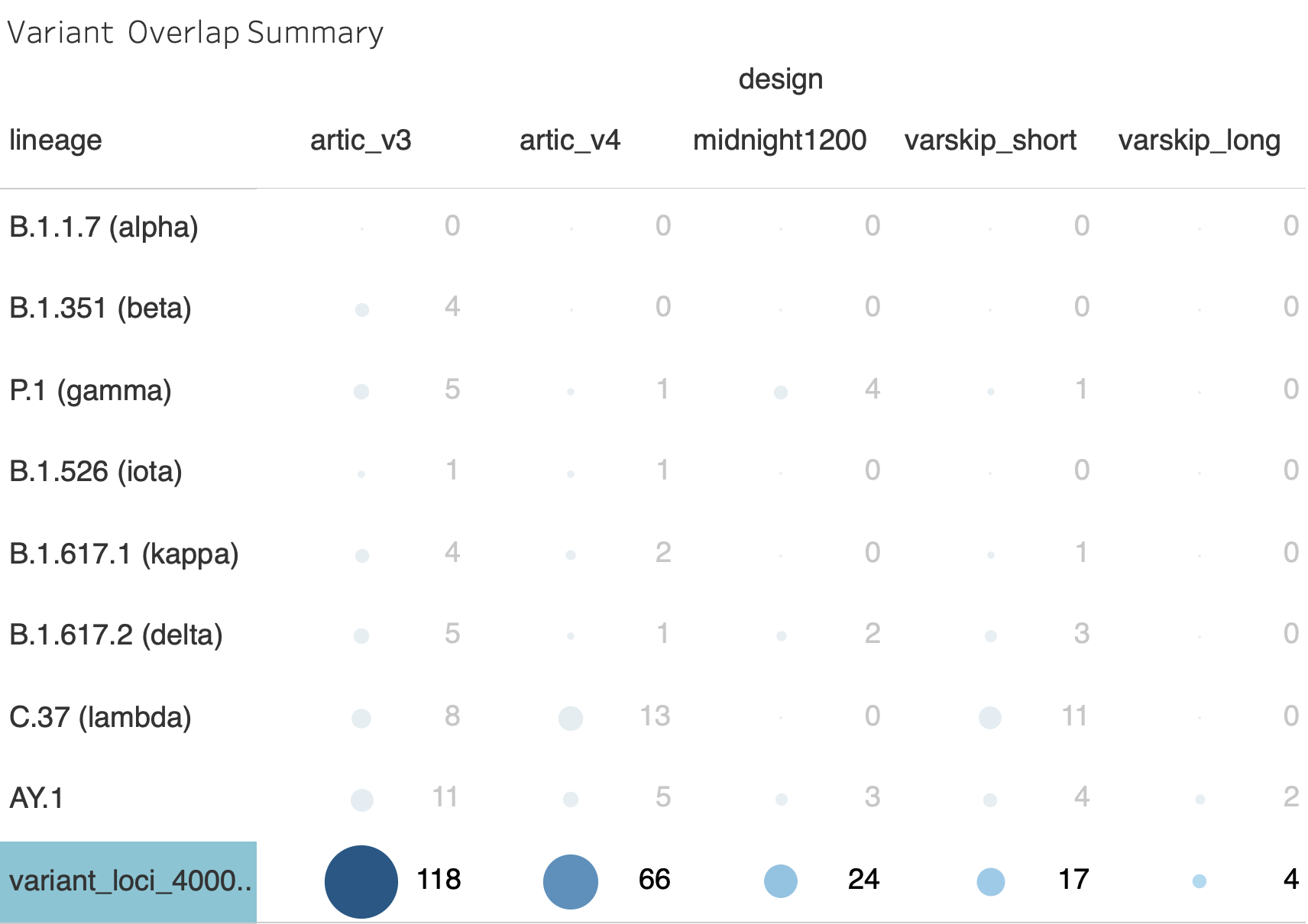 Orange ARTIC v3 primers overlap with a lineage of concern (yellow). Many ARTIC primers overlap sites with more than 2500 variant observations (red)