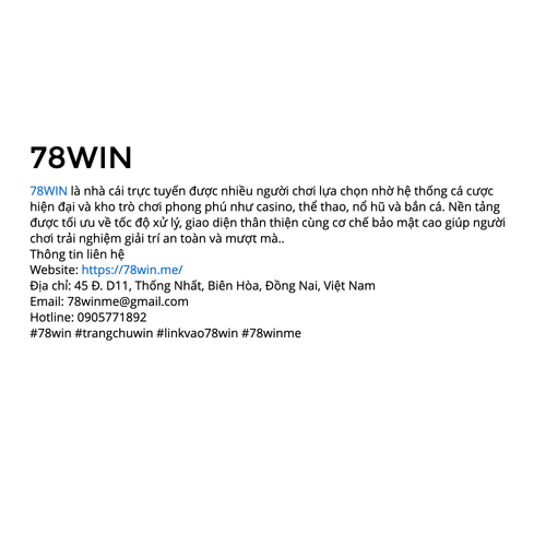 78WIN là nhà cái trực tuyến được nhiều người chơi lựa chọn nhờ hệ thống cá cược hiện đại và kho trò chơi phong phú như casino, thể thao, nổ hũ và bắn cá. https://78win.me/