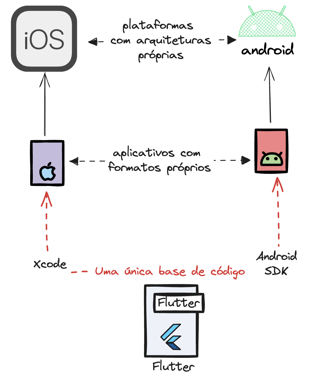 A mesma base de código gera aplicativos para ambas plataformas