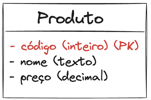 | Código (PK) | Nome | Preço |