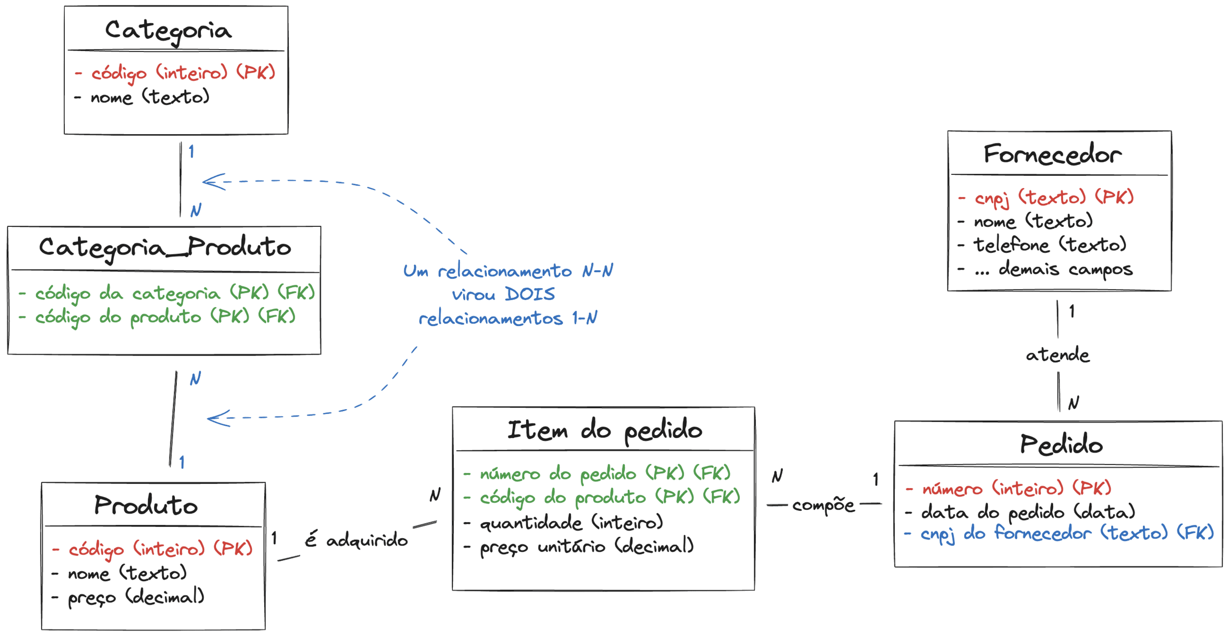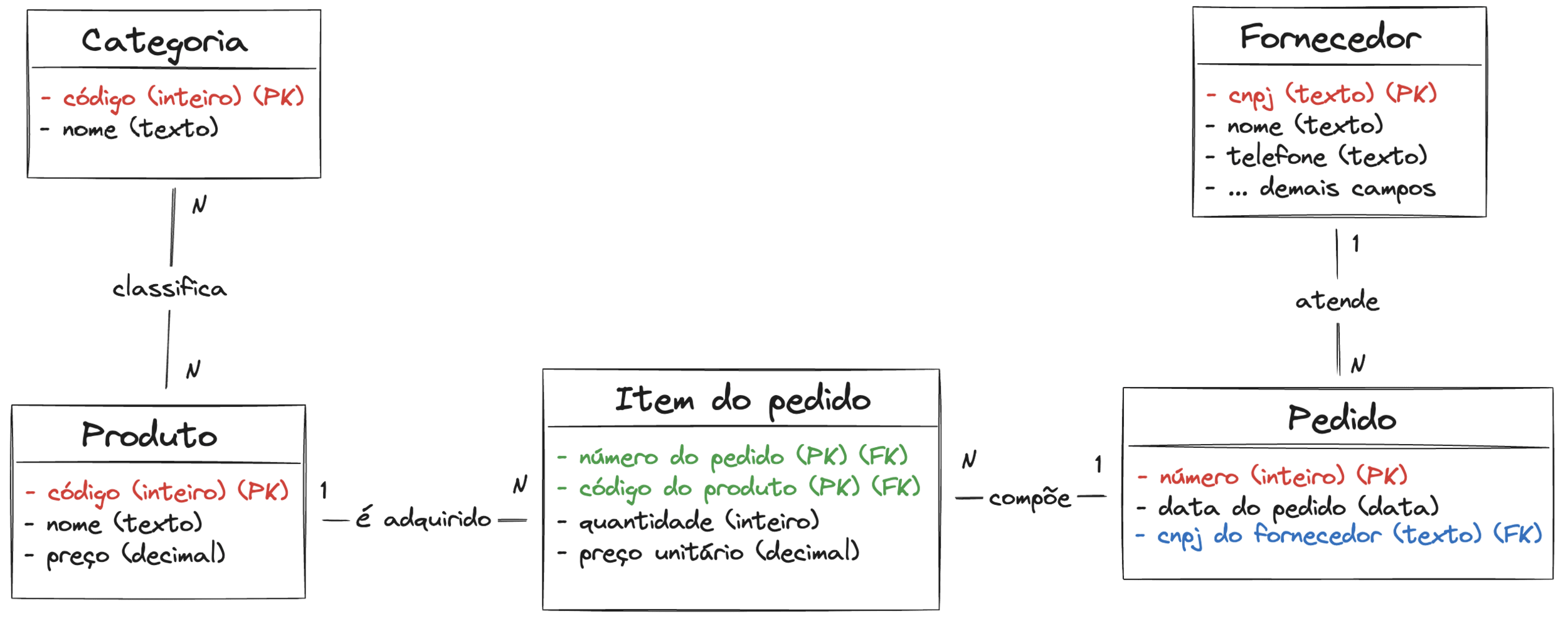 - As "caixinhas" são as entidades do negócio modelado;